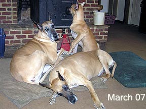 |   |  Shasta, Sydney and Pumpkin...toasting! |