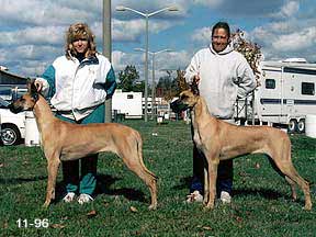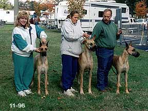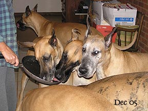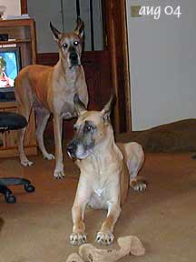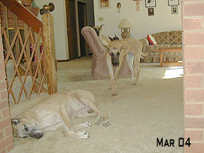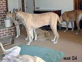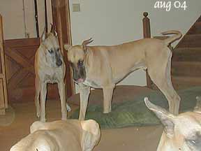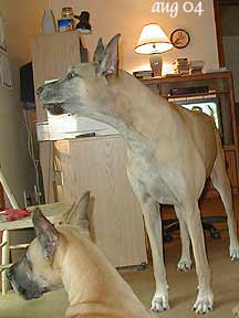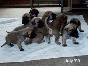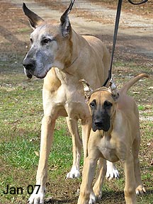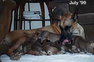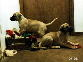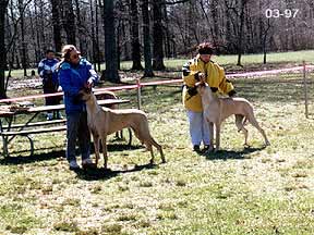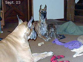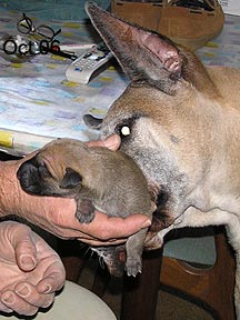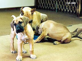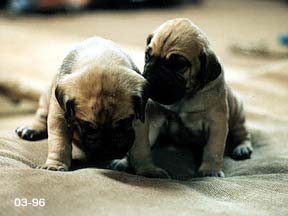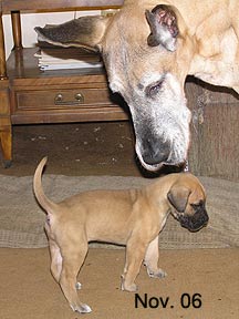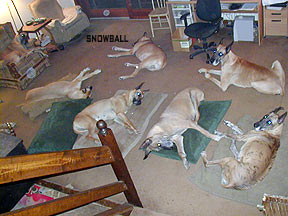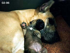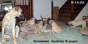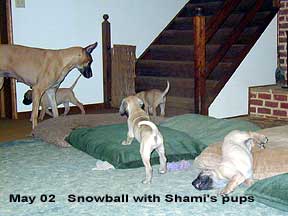 |   Snowball and her granddaughter, Sydney, checking out Ch. Shami's new babies. |  |