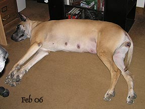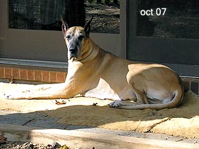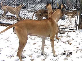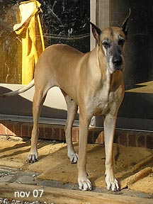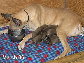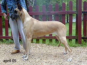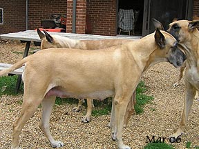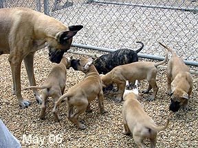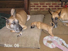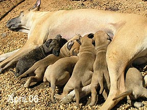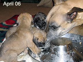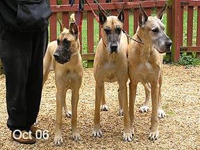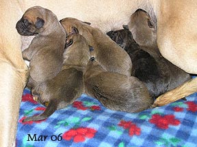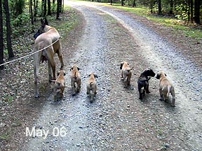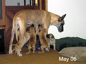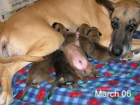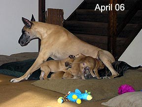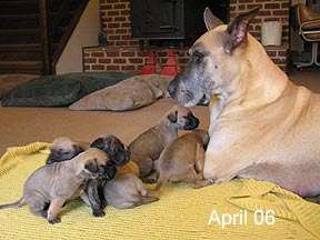four fawn males, one brindle male and one fawn female sired by Ch. Anandane's